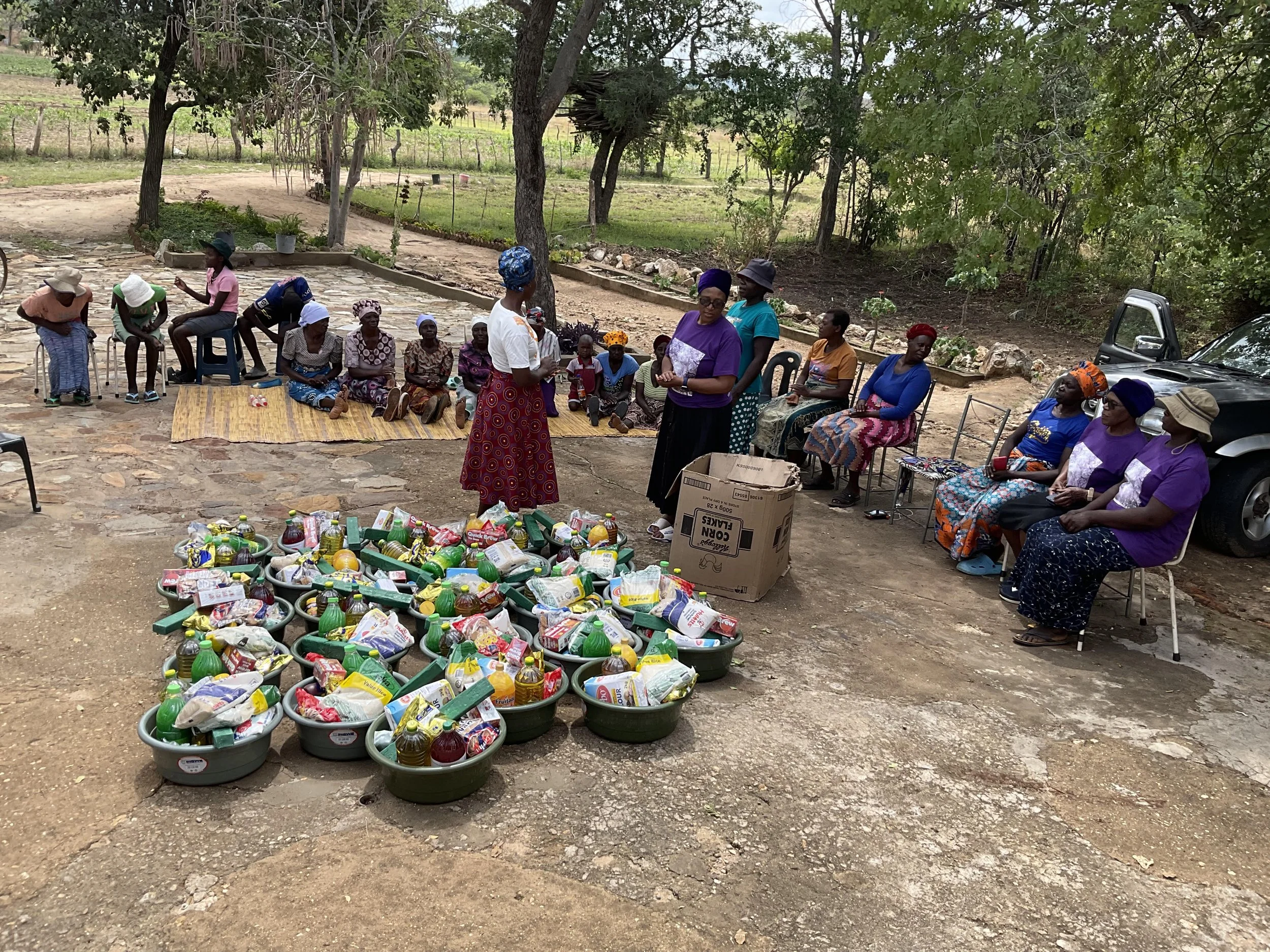 About 4 grandmothers could not make it to collect their groceries, so they sent representatives.